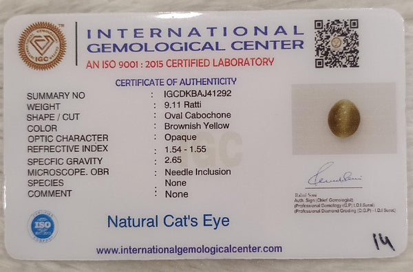 Natural Cat’s Eye: The Stone of Ketu for Protection and Spiritual Growth Summary No IGCDKBAJ41292