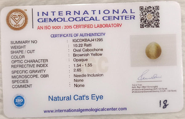 Natural Cat’s Eye: The Stone of Ketu for Protection and Spiritual Growth Summary No IGCDKBAJ41295