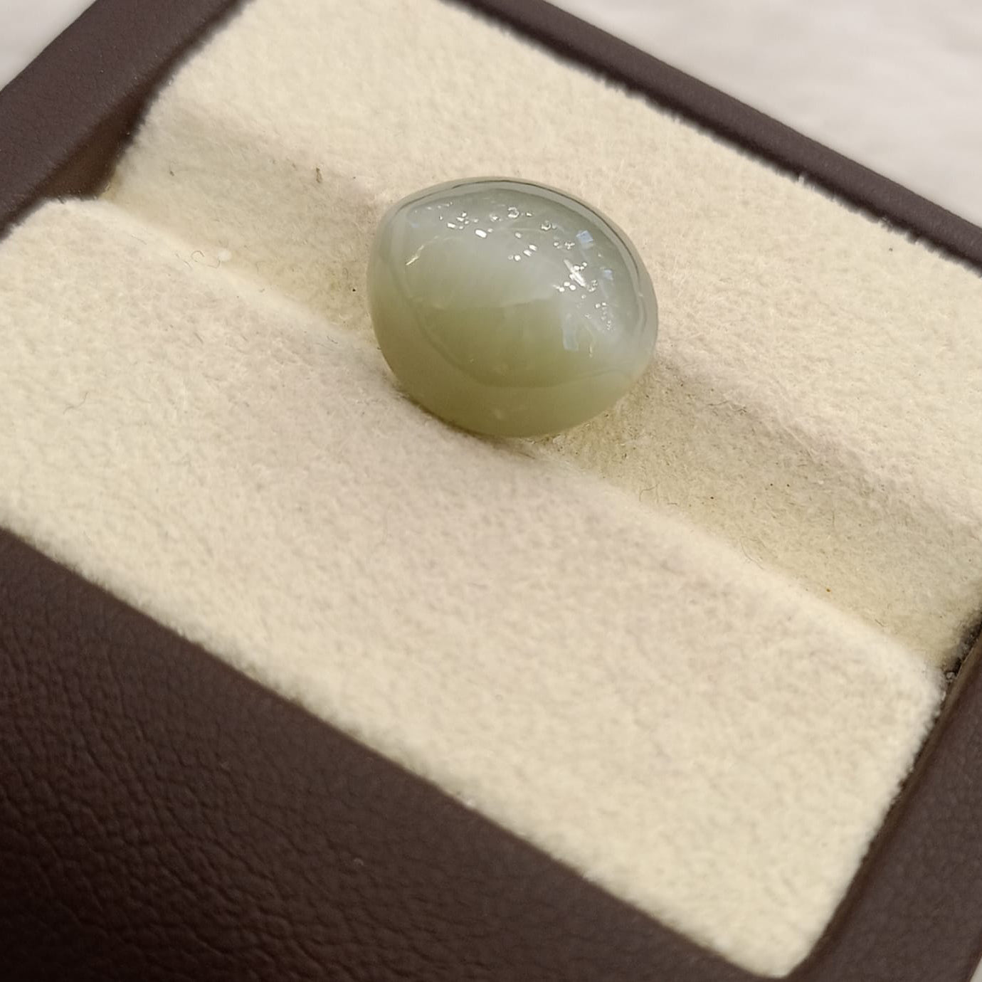 - Unique Beauty and Mystique The 10.22 Ratti Natural Cat’s Eye is celebrated for its distinctive ‘chatoyancy,’ where a band of light resembling a cat’s eye appears across the surface of the stone. This unique feature makes it a visually striking gemstone, perfect for rings or pendants. Its glowing, mystical appeal adds an element of sophistication and intrigue to any jewelry piece, making it an eye-catching addition to your collection.