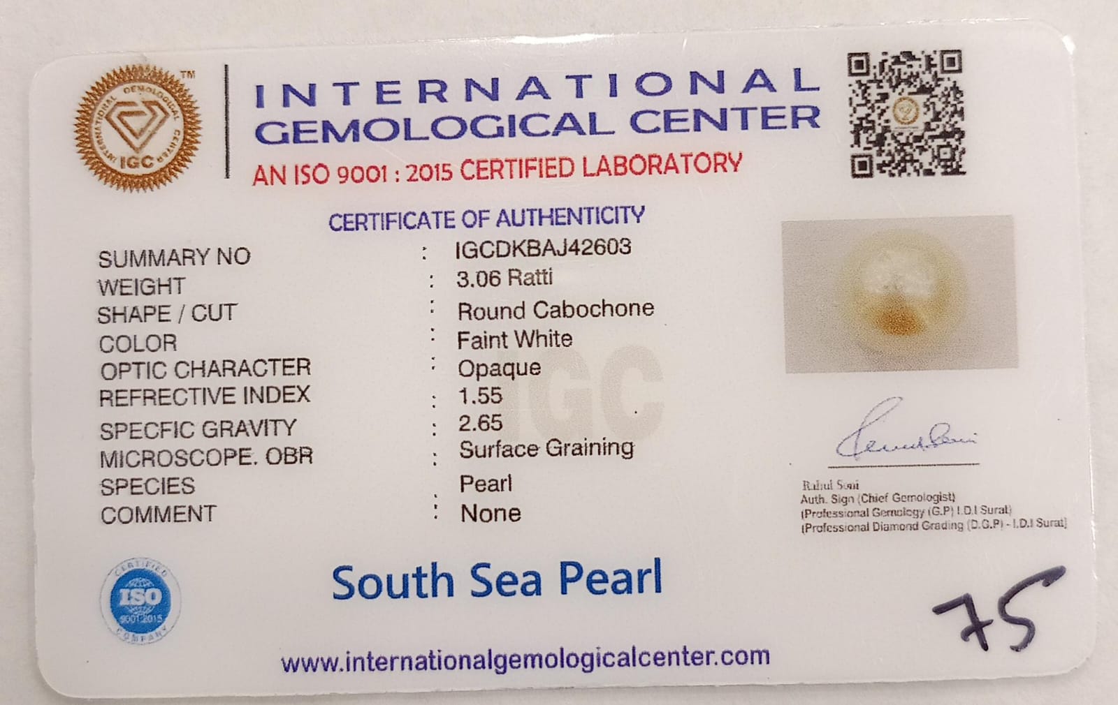 Natural South Sea Pearl – A Symbol of Elegance & Purity Summary No IGCDKBAJ42603