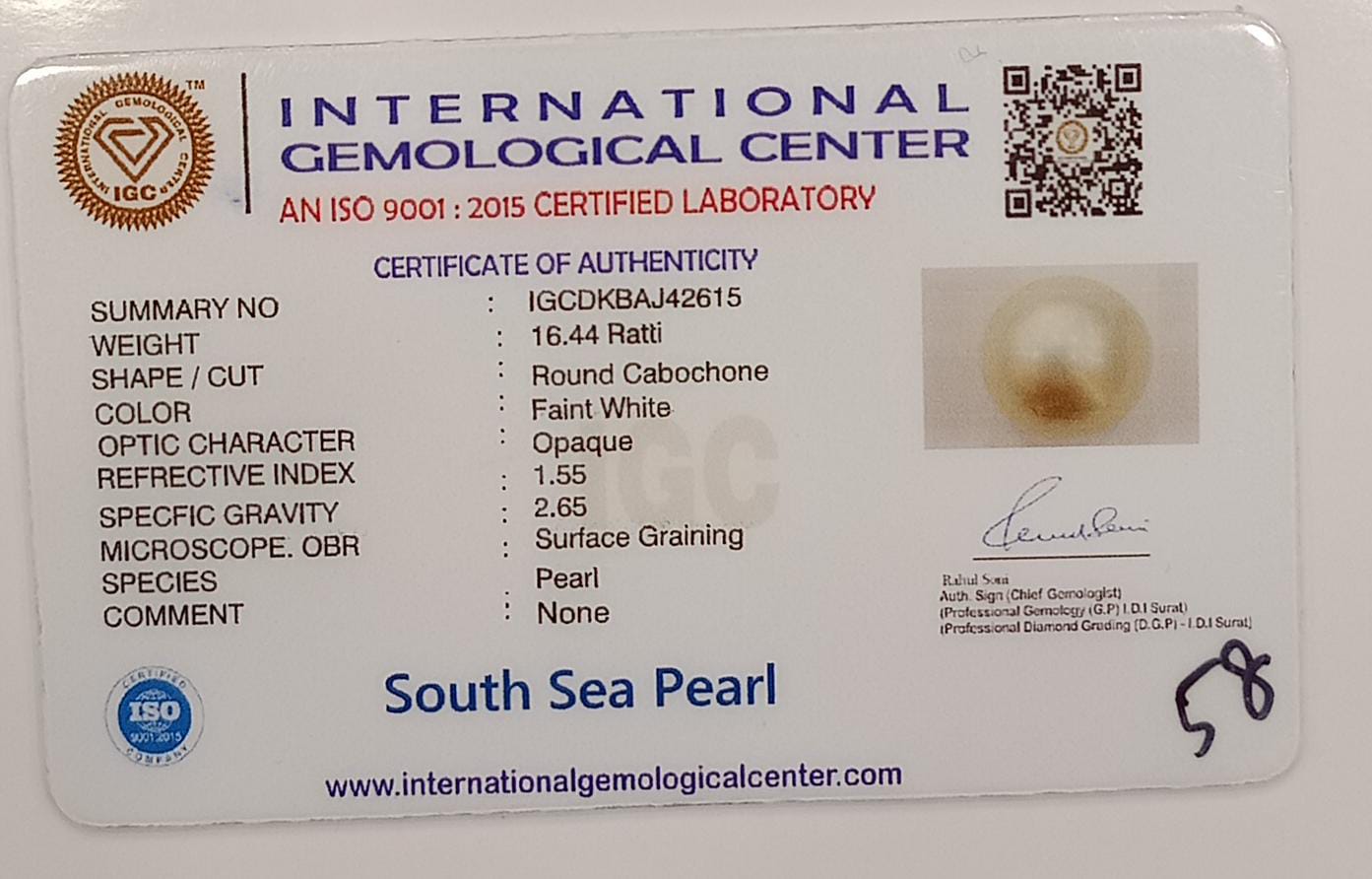 Natural South Sea Pearl – A Symbol of Elegance & Purity Summary No IGCDKBAJ42615
