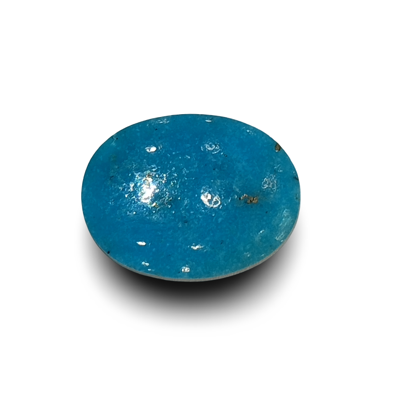 Introducing a vibrant Natural Turquoise (Firoza) gemstone weighing 9.17 Ratti, elegantly shaped in an Oval Cabochon cut. This captivating Sea Blue stone is certified by the International Gemological Center (ISO 9001:2015) and features a distinct Matrix Background, adding to its charm and character.