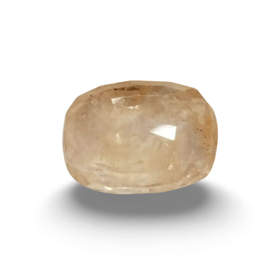 Discover the brilliance of this 6.50 Ratti (5.85 carats) Natural Yellow Sapphire (Pukhraj) — a vibrant yellow gemstone known for its astrological significance and natural purity. Ideal for Jyotish use, this sapphire is 100% natural with no heat treatment, preserving its original energy and charm.