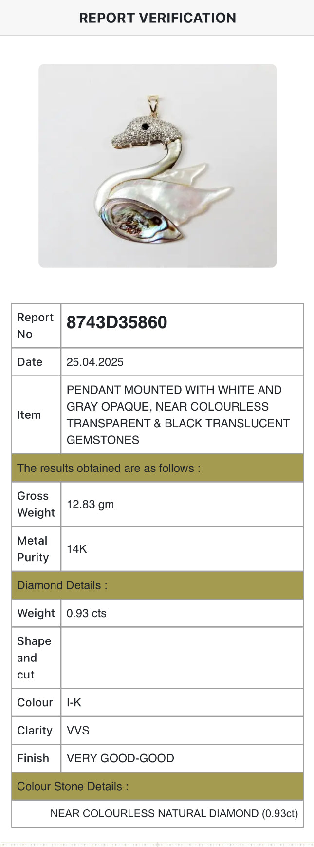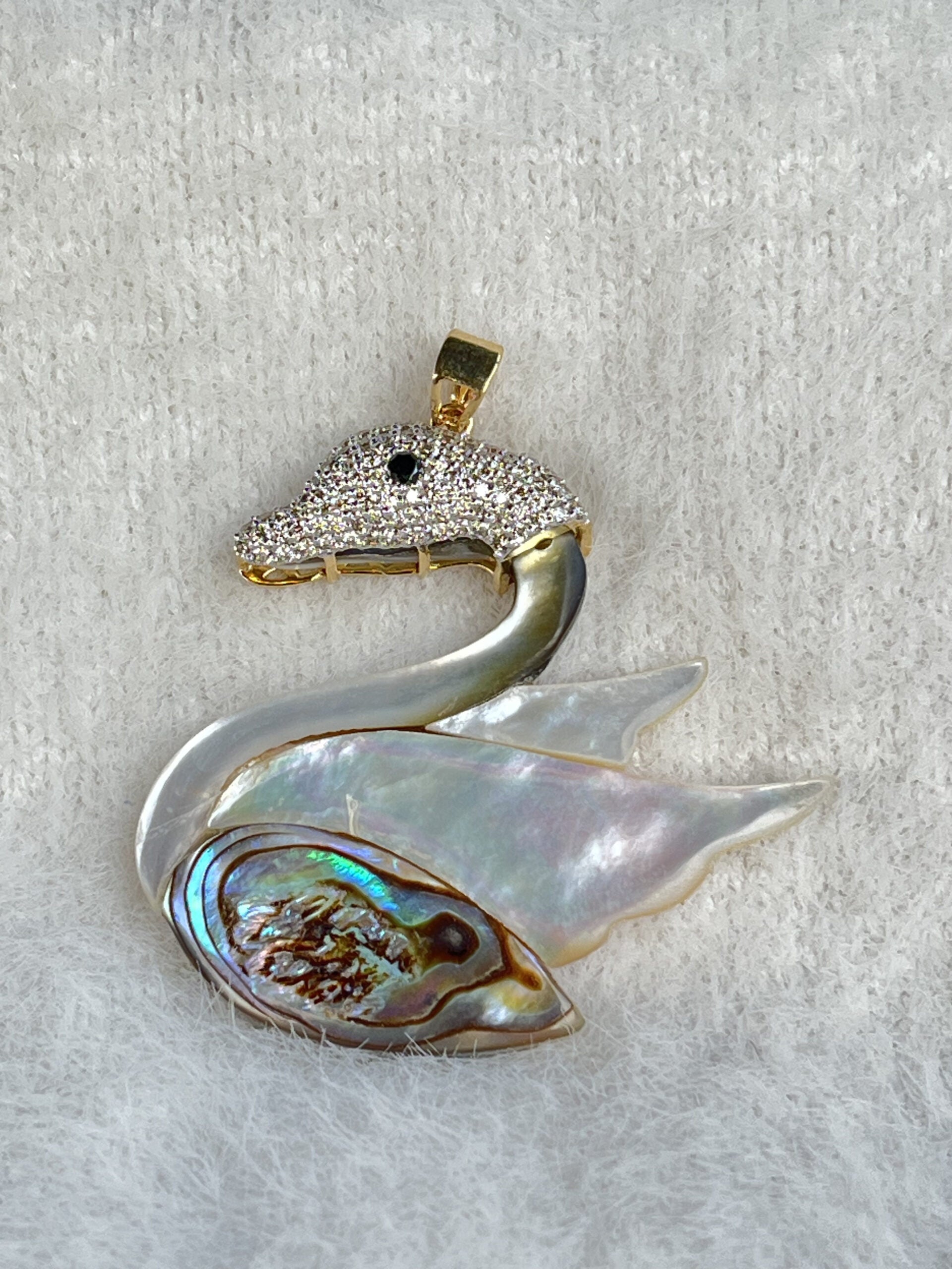 Swan Radiance Pendant – 0.93 ct Natural Diamonds in 14K Gold with Handcrafted Gemstone Inlay
